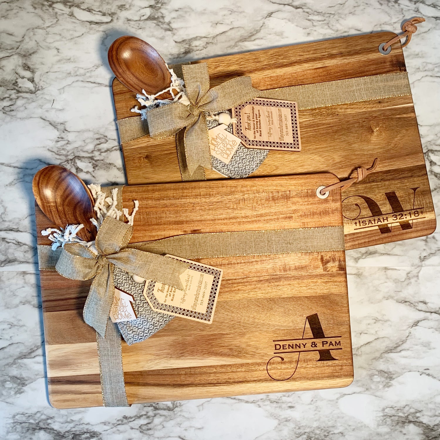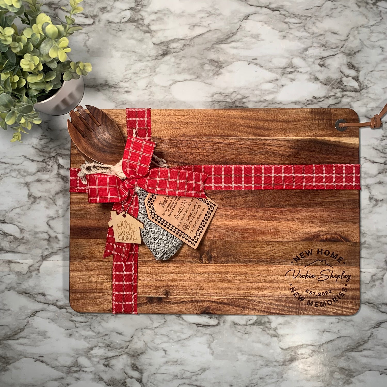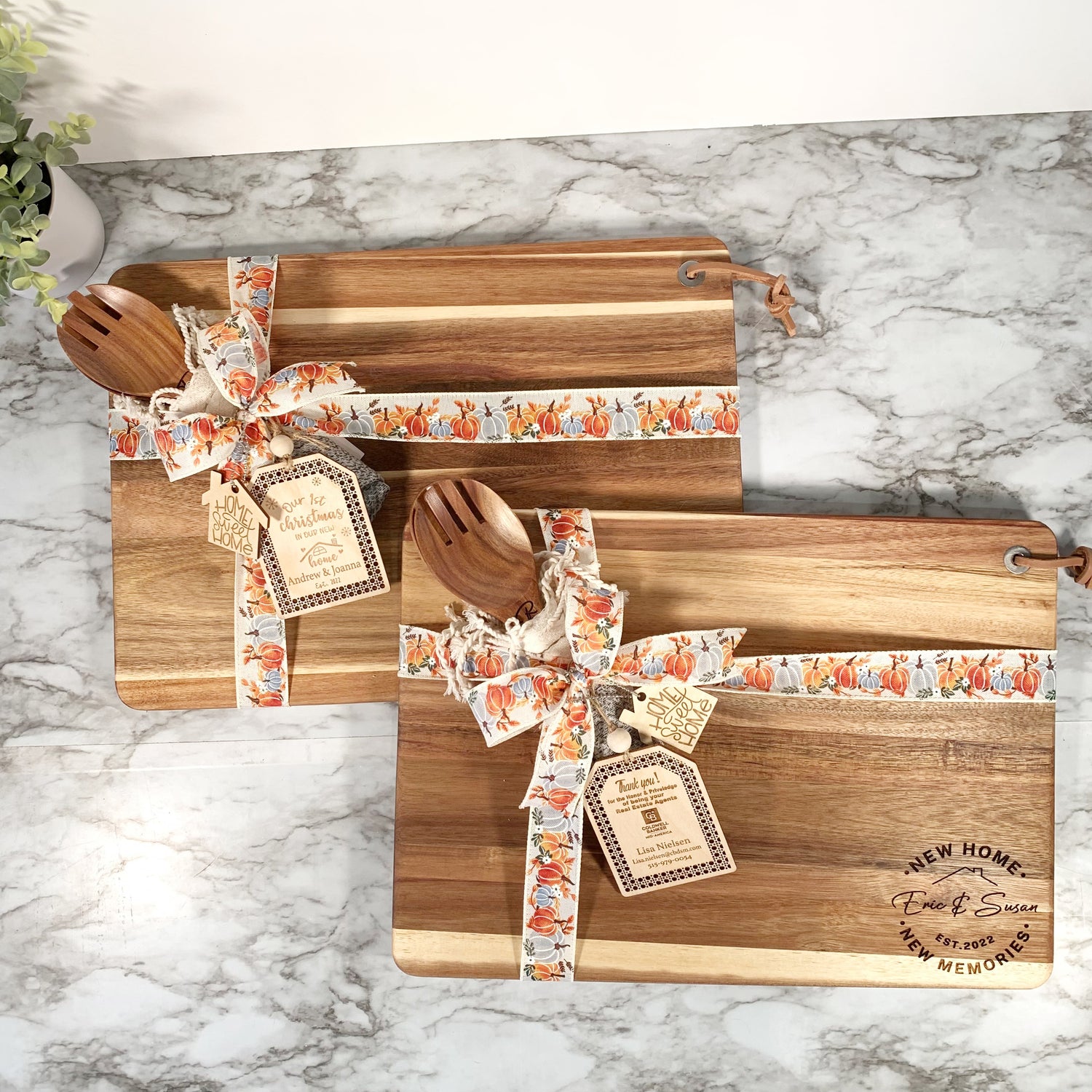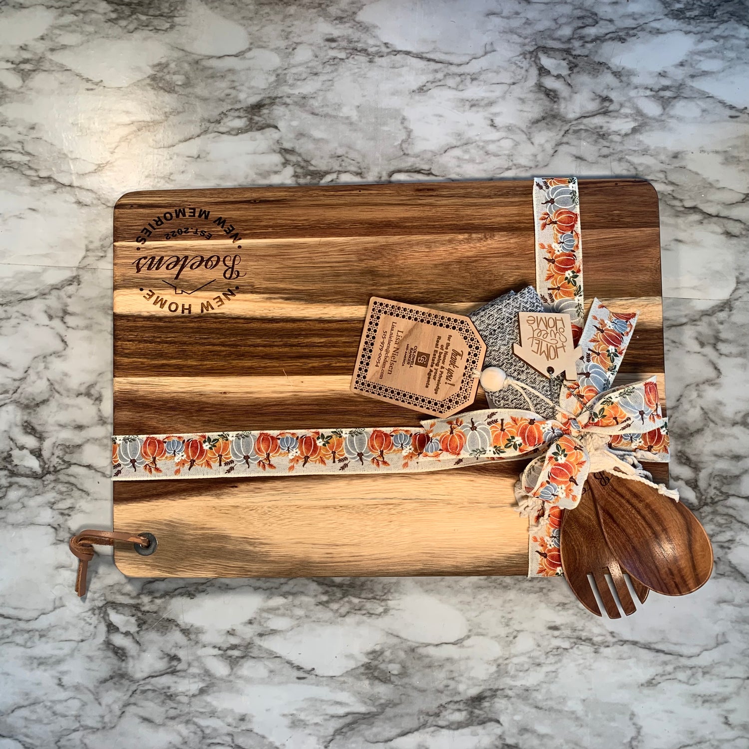 This beautiful personalized cutting board bundle makes the perfect gift for a Real Estate Closing! Give your clients a unique and very personal gift they will treasure for years to come. We will include your business branding free of charge.