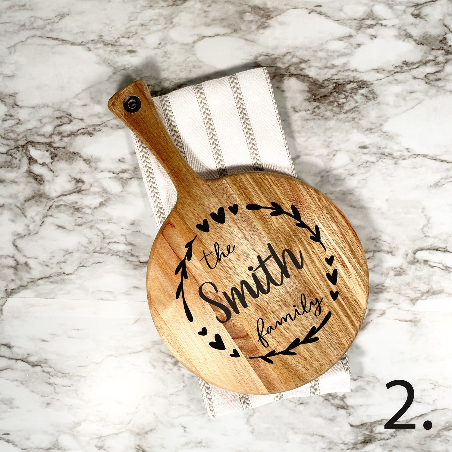 - When inputting text for personalization, please specify EXACTLY how you want it to read. If you don't want certain words included in your design, please specify this in the personalization box. For example, if the design shows "The Halls" and the buyer places their order with the name "Moore", their cutting board will read "Moore" unless they specifically note in the personalization box "The Moore Family" or "The Moore's"