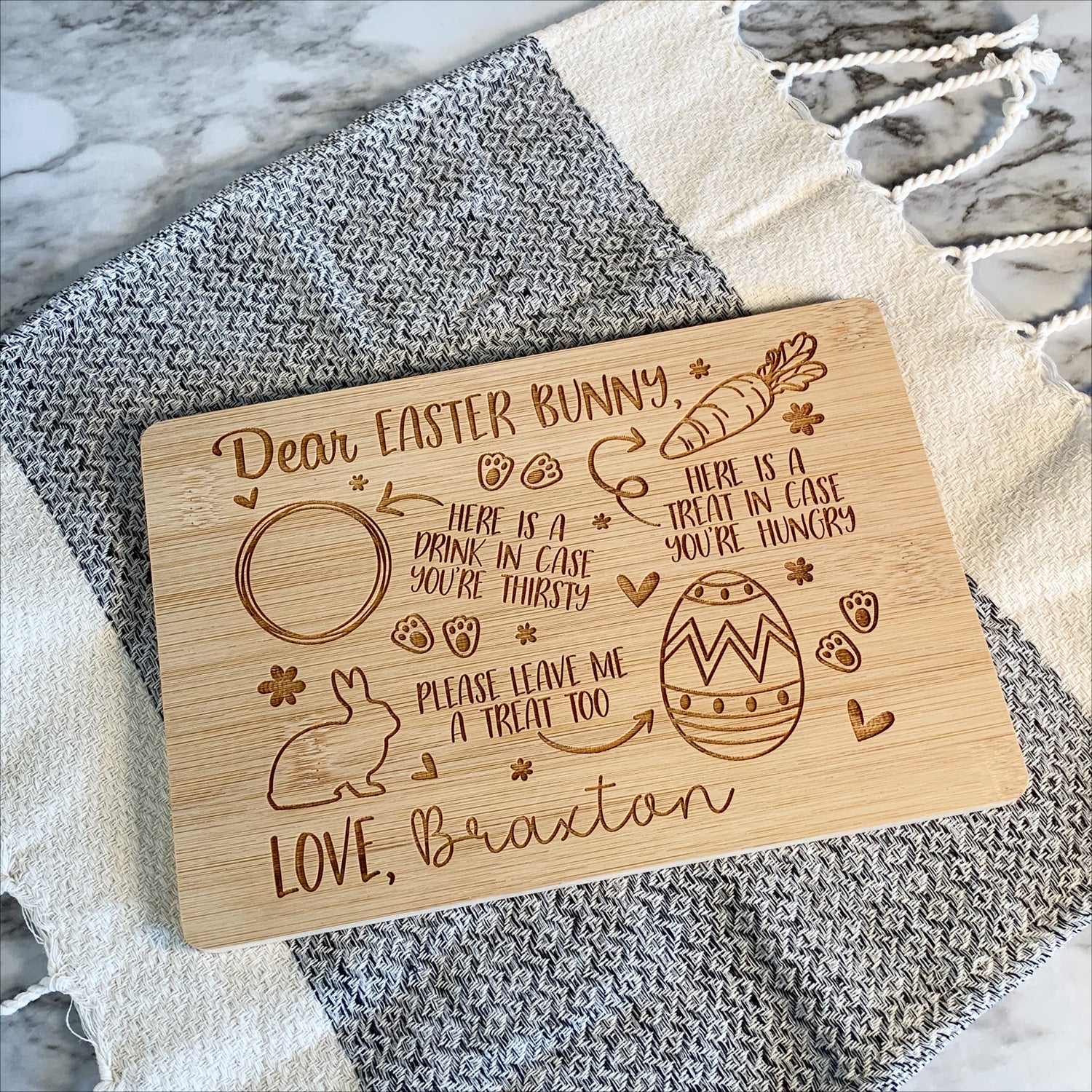Get your kids excited for the Easter Bunny to visit with this personalized Easter Bunny treat tray. Customize this tray with your child / children's / or family name.