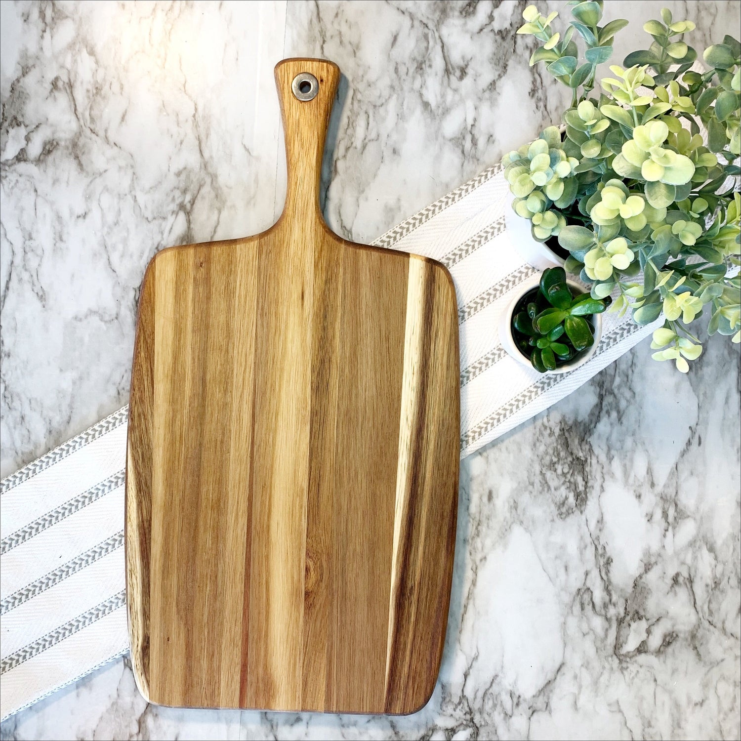 -- Acacia board - 14 3/4 X 7 1/8 (shown in picture with engraved recipe)